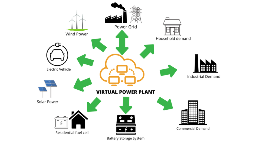 Nhà máy điện ảo (VPP) là một hệ thống mạng lưới tiên tiến. Cho phép nhiều nhà sản xuất năng lượng phân tán như điện gió, năng lượng mặt trời tích hợp và kết nối với nhau thông qua một nền tảng đám mây. Điều đặc biệt là VPP có khả năng hoạt động theo thời gian thực, giống như một nhà máy điện lớn duy nhất. VPP có thể bao gồm nhiều thành phần khác nhau như pin lưu trữ, xe điện, thiết bị thông minh, hệ thống tải làm mát và sưởi ấm linh hoạt,... Đây là mô hình đang được Úc tập trung nghiên cứu và phát triển.